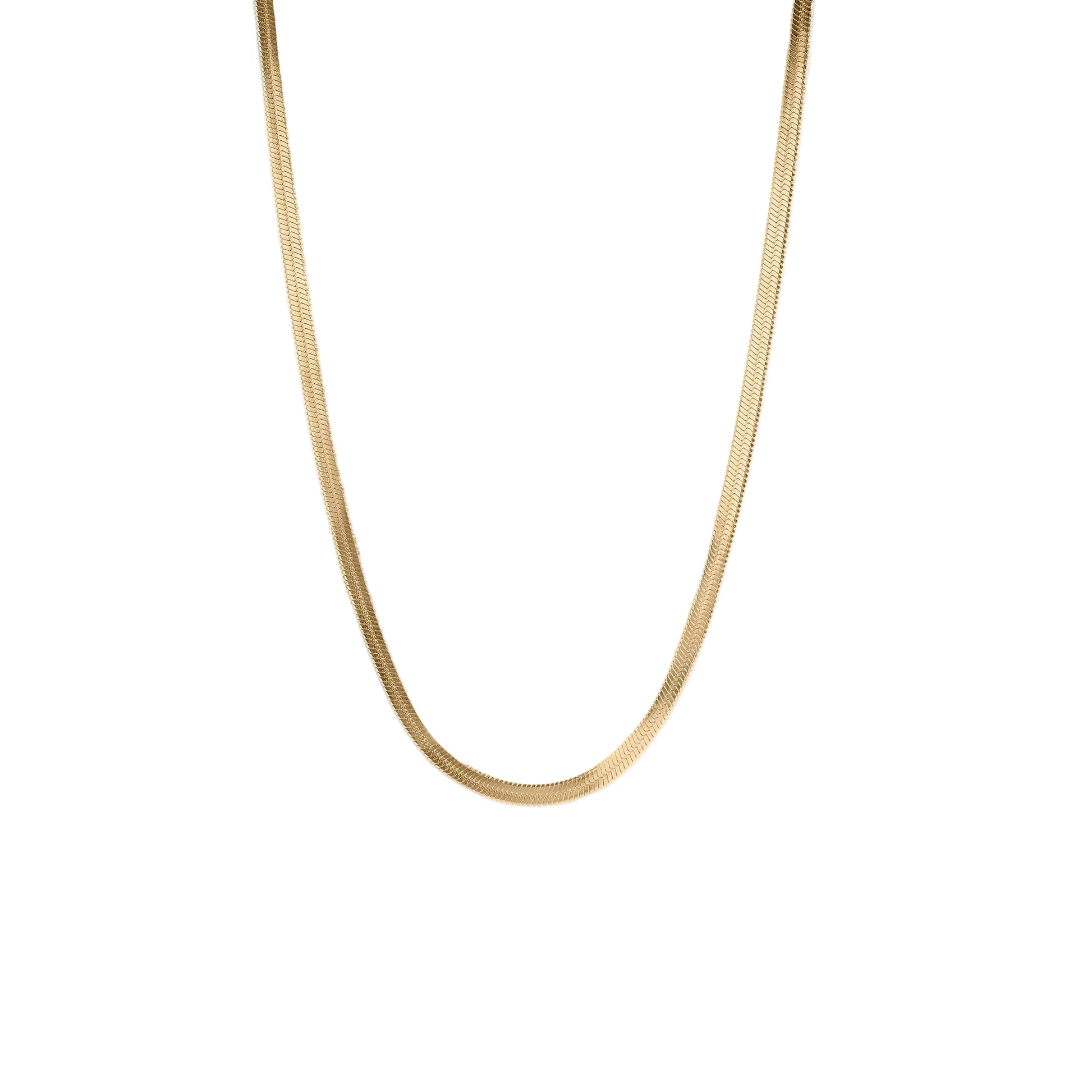 A classic chain necklace for any holiday gift! The Gold Herringbone Chain Necklace is a stunning and elegant best-seller to keep in your necklace collection year-round for her. One of our bestselling chains for a reason, the gold herringbone chain is a versatile necklace for women that can be worn alone or paired with other chains to achieve the perfect layered necklace look.