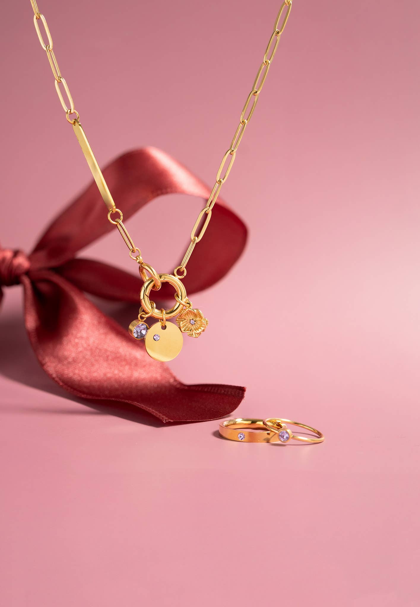 Our birthstone stacking ring helps you dial up your personalized style with a playful twist.